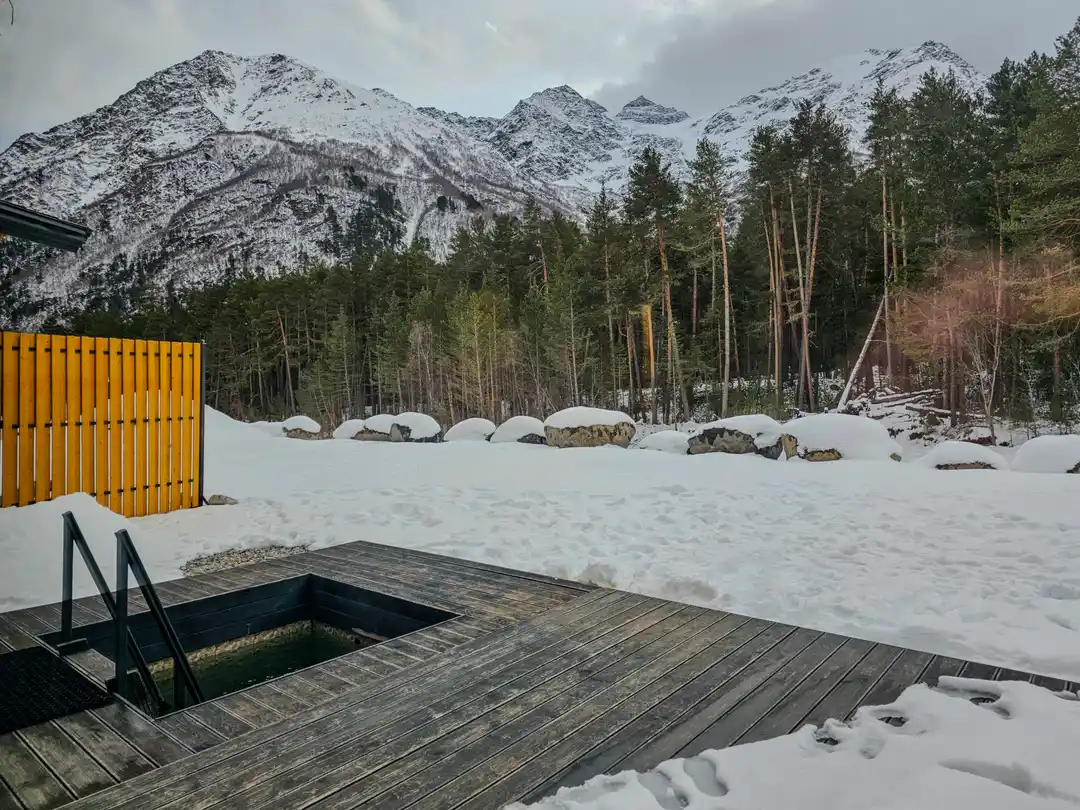 Приэльбрусье Терскол, Банный комплекс с видом на ледники у горной реки